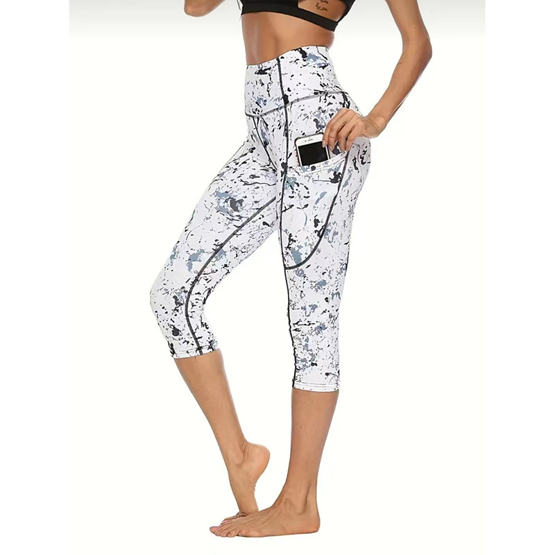 Women's Yoga Pants Side Pockets Butt Lift Tummy Control High Waist Pilates Gym Workout Running Tights Capri Leggings Bottoms Print BlackPinkGreen Black White Spandex Fall Winter Sports Activewear