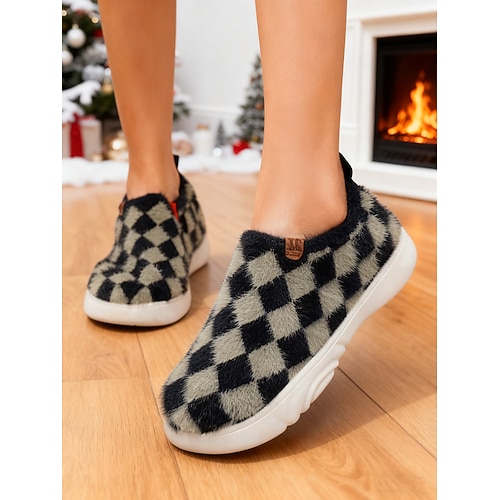 Per donna Sneakers Scarpe a calzata larga Quotidiano Plaid Tacco basso Punta Tonda Casual Comfort Collegiale Camminata Pelliccia Sintetica Mocassino Nero Viola Marrone