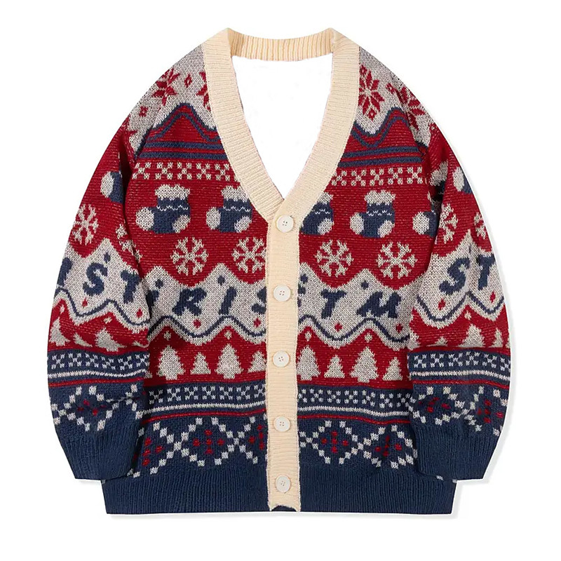 Christmas Men's Christmas Pattern Fair isle Sweater Cardigan Sweater V Neck Casual School Vacation Daily 3D Print Keep Warm Long Sleeve Spring Fall Winter Red