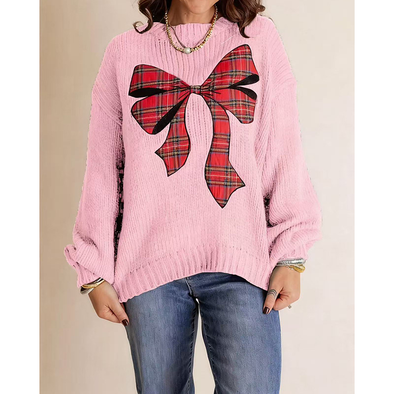 Women's Christmas Sweater Fair Isle Sweater Sweater Pullover Fashion Streetwear Casual Floral Geometric Crew Neck Knitted Print Long Sleeve Regular Tops Knit Daily Holiday Going out White Pink Fall