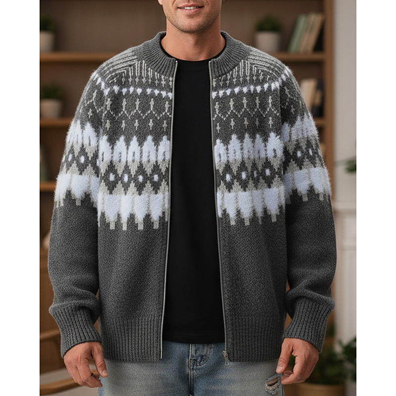 Men's Christmas Sweaters Cardigan Sweater Cropped Sweater Fair Isle Sweater Zip Sweater Ribbed Knit Regular Tops Knitted Geometic Stand Collar Fashion Classic Vacation Daily Wear Clothing Apparel