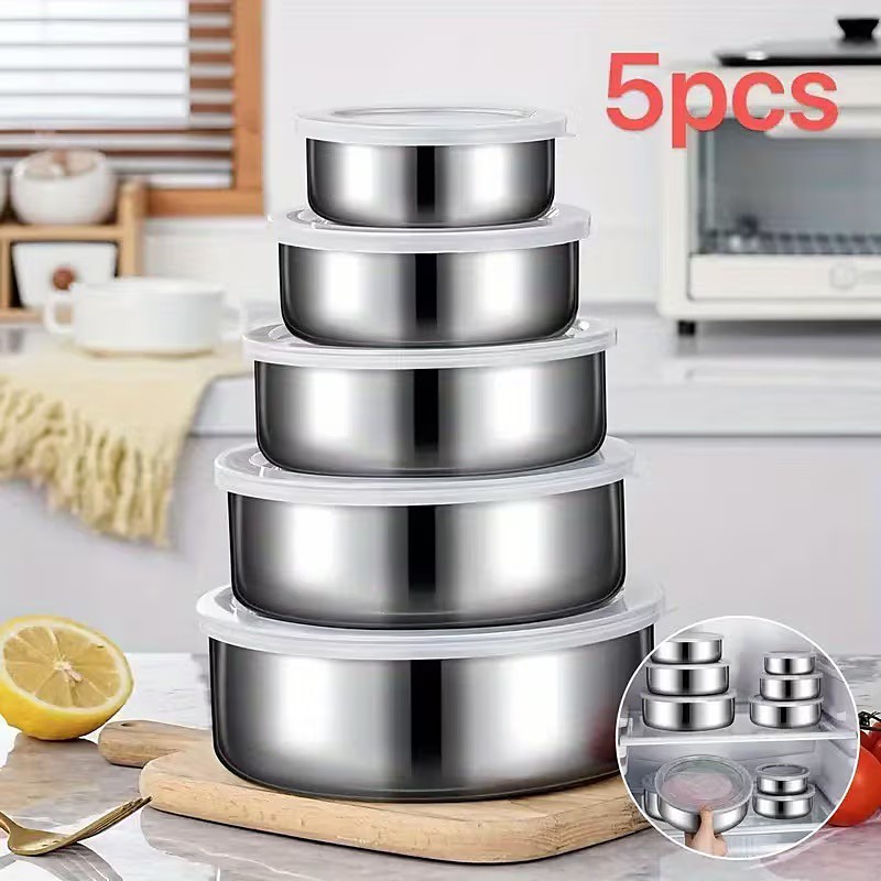 5pcs Color-Coded Lids Airtight Food Storage Container Set with Lids - Heavy-Duty Stackable Pantry Organizers, Space-Saving Kitchen Fridge Containers for Meal Prep, Leftovers, Fruits, Vegetable