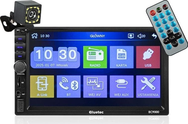 Car Radio BC9000 2DIN 7 cali RDS USB microSD 4x50W reversing camera