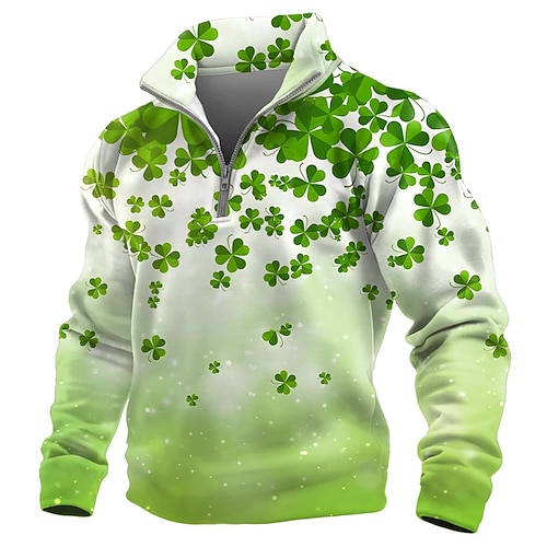 Giorno di San Patrizio Per uomo Trifoglio Irlanda Felpa Sport Moda Casual Collo Alto Con cerniera Casa Abbigliamento casual alla moda Lavoro Feste Blu Verde 2# Verde 3# Verde Autunno Tutte le stagioni