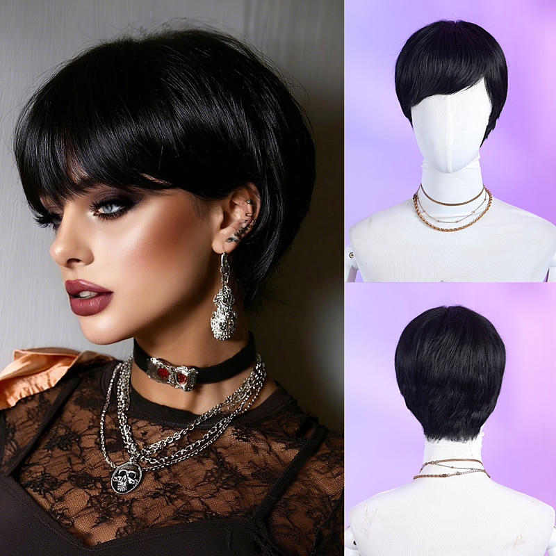 Synthetic Wig Straight Natural Straight Middle Part Neat Bang Wig 8 inch Black Synthetic Hair 8 inch Women's Soft Comfy White
