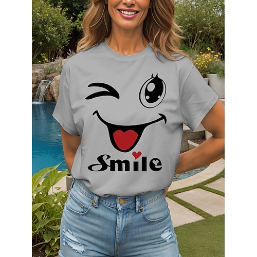 Per donna Maglietta Cuore Grafico Lettera Vintage Elegante Classico Manica Corta Girocollo Top Regolari Quotidiano Weekend Stampato Nero Bianco Giallo Rosa Rosso Estate