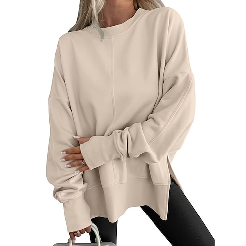 Per donna Felpa Pullover Semplice Streetwear Casual Manica Lunga Girocollo Top Regolari Streetwear Abbigliamento Quotidiano Nero Bianco Rosa Blu marino Kaki Primavera Autunno
