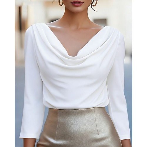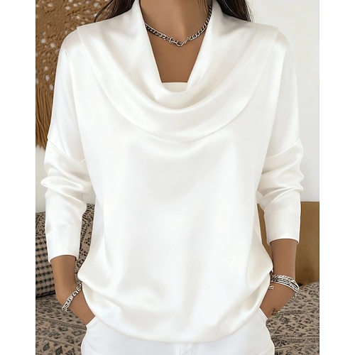 Per donna Blusa Top Eleganti Tinta unica Elegante Signore Classico Manica Lunga Scollo a Cascata Top Regolari Quotidiano Lavoro Uscire Arricciato Patchwork Drappeggiato Blu Nero Bianco Autunno Inverno