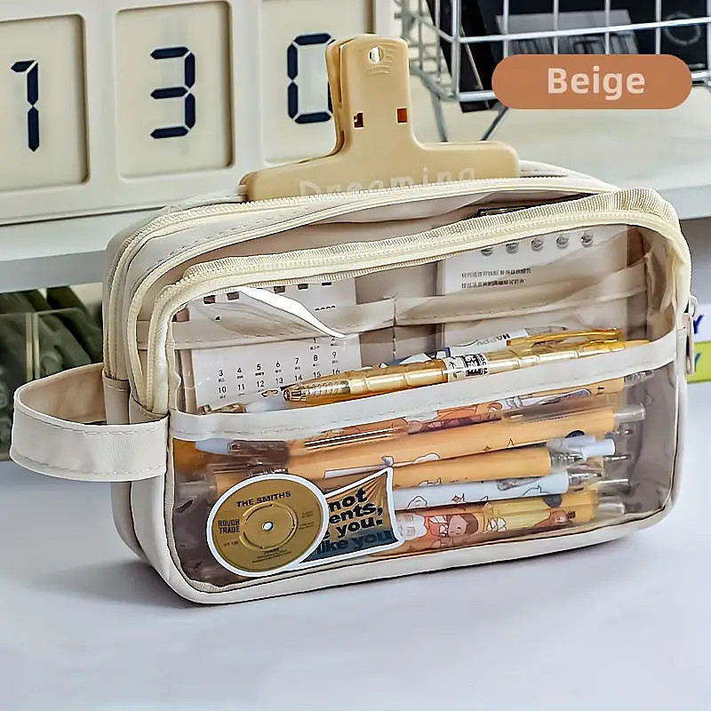 New Transparent Pen Bag Large Capacity Multi-layer Stationery Bag To Store Students Pencil Case