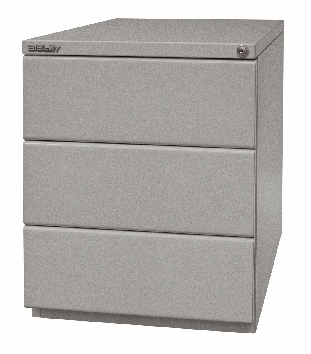 BISLEY OBA Rollcontainer mit 3 Schüben aus Metall abschließbar in silber - Bürocontainer mit Schloss für DIN A4 Dokumente, Kleinteile & Büromaterial,