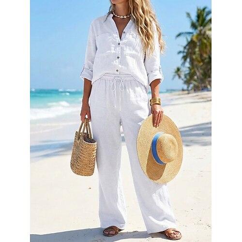 Per donna Set di biancheria in cotone Set di Pantaloni Bolero Top Manica Lunga Scollo a V Semplice Coulisse Moda Streetwear Quotidiano All'aperto Spiaggia Nero Bianco Giallo Estate Vestibilità comoda