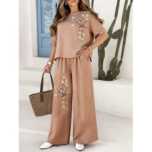 Per donna Set di biancheria in cotone Set di Pantaloni Mezza Manica Girocollo Floreale Elegante Moda Streetwear Casuale Quotidiano All'aperto Nero Bianco Rosa Primavera Estate Vestibilità comoda
