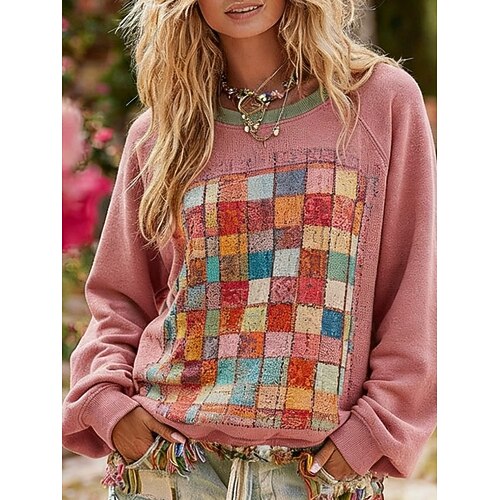 Per donna Pullover Felpe Plaid Moda Streetwear Classico Manica Lunga Girocollo Top Regolari Abbigliamento Quotidiano Casuale Stampato Rosa Verde Primavera Autunno