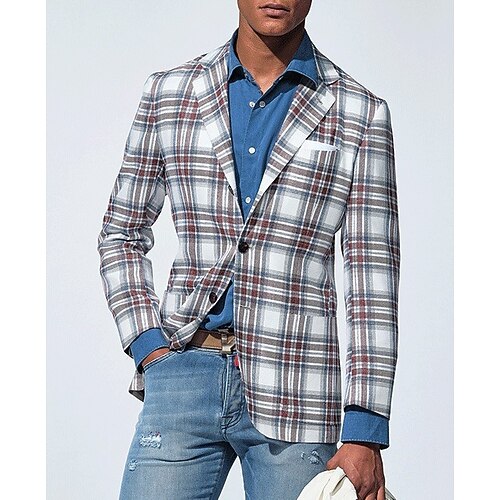 Da uomo Giacca Leggera Giacca Estiva Casuale All'aperto Monopetto Estate Primavera Poliestere Plaid Quadri Di tendenza Monopetto Giacca BiancoA BiancoB Giallo