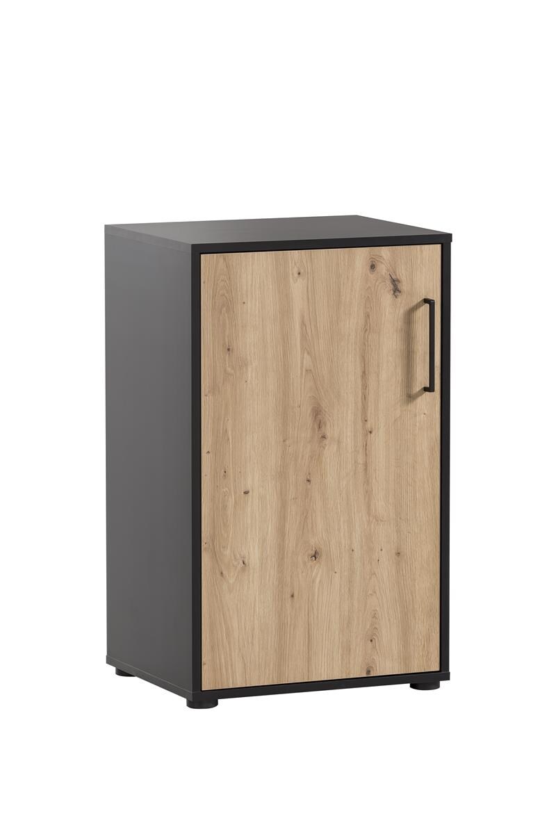Möbelpartner Aktenschrank Raven | Small | HxBxT 84x51x41cm | 2 Fächern & 1 Flügeltür | Eiche/Schwarz | Büroschrank von PROREGAL