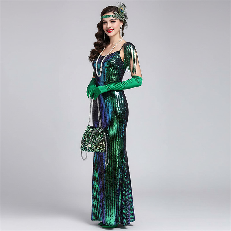 Roaring 20s 1920s The Great Gatsby Party Costume Masquerade Halloween Costumes The Great Gatsby Wedding Guest Sequins Sequin Fancy Dress Women's Wedding Party Wedding Guest Adults' Shawl Homecoming