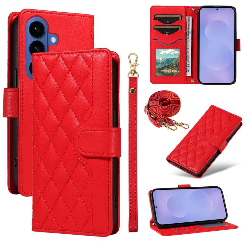 Rhombus Samsung Galaxy S26 Plus Fodral Äkta Läder - Röd