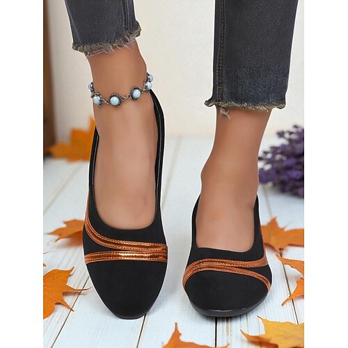 ballerine nere da donna: comode scarpe slip-on con punta tonda e finiture metalliche, adatte al lavoro, all'ufficio e all'uso quotidiano