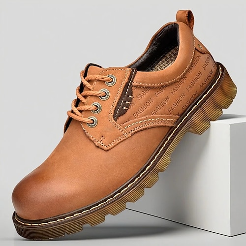 scarpe stringate da uomo in similpelle marrone, comode e casual con suola resistente, calzature versatili per il lavoro e l'uso quotidiano