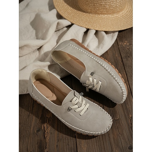Mocassini da donna in pelle scamosciata beige con suola a carrarmato – scarpe casual slip-on con plateau e fibbia dorata per lavoro, viaggi e outfit da fine settimana