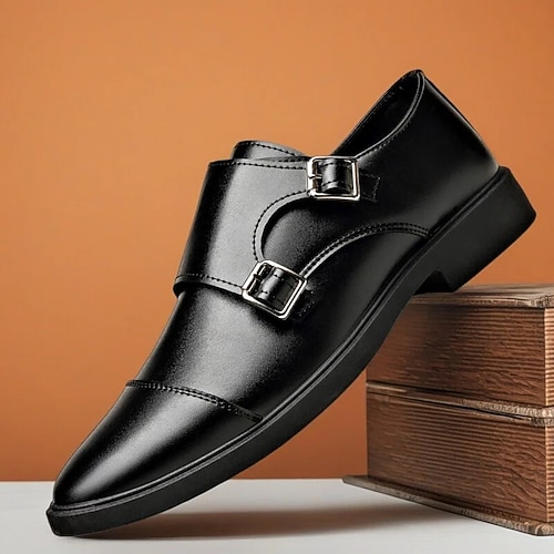 scarpe da uomo formali in similpelle nera con doppia fibbia e finitura lucida: calzature eleganti e raffinate per lavoro, matrimoni e occasioni speciali