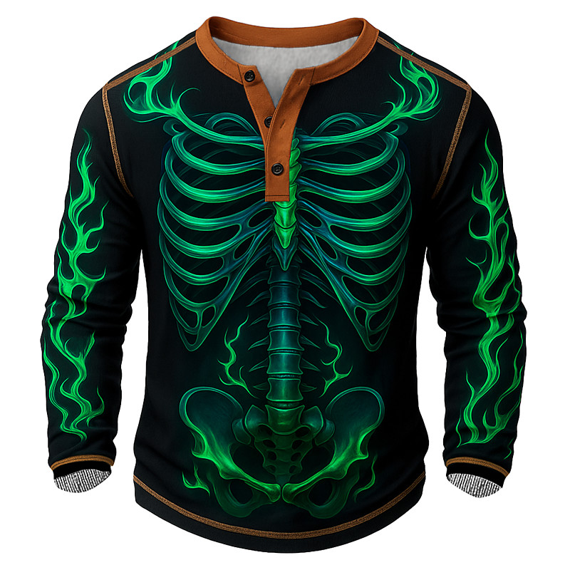 Men's Skull Cool Skulls Shirt Henley Shirt Tee Long Sleeve Vintage Fashion Designer Spirit Party Spring Fall All Seasons Red Green khaki Gray Henley Henley