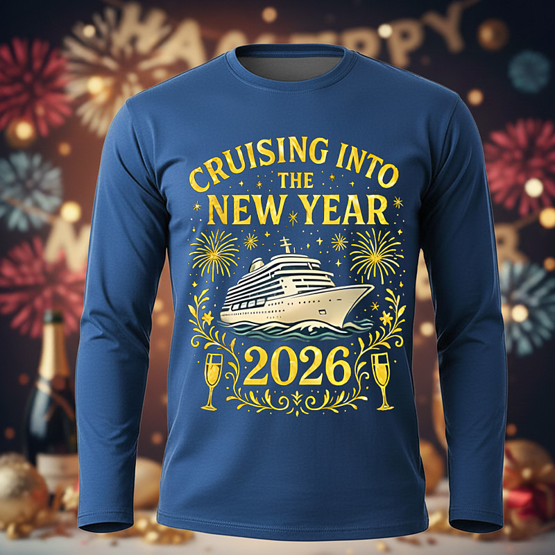 New Year Men's Happy New Year Fireworks Cruise Ship T Shirt Long Sleeve T shirt 3D Print Crew Neck Shirt Exaggerated Designer Artistic Party Street Club Blue Black Red Fall Winter Clothing Apparel S