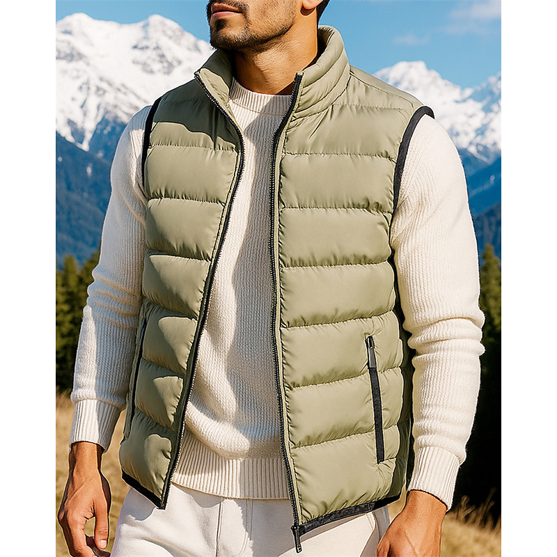 Men's Hiking Vest Puffer Vest Sleeveless Vest Outdoor Thermal Warm Lightweight Winter Zipper Polyester Black Army Green Burgundy Hunting Fishing Climbing