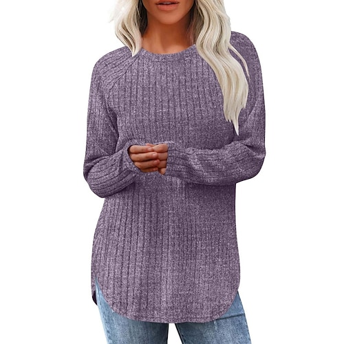 Per donna Blusa con texture Maglietta Semplice Casual Manica Lunga Girocollo Top Regolari Uscire Weekend Nero Bianco Rosa Vino Autunno