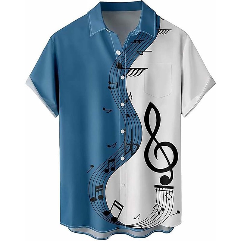 Men's Musical Notes Shirt Summer Shirt Button Up Shirt Short Sleeve Fashion Casual Daily Music Festival Summer Spring Turndown 3D Print Collared Shirts Front One Pocket Blue Purple Green Rose Red
