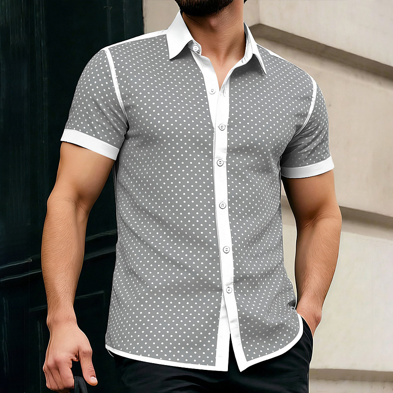 Men's Geometric Polka Dot Round Dots Shirt Button Up Shirt Casual Dress Shirt Short Sleeve Fashion Casual Daily Vacation Summer Spring Turndown 3D Print Collared Shirts Blue Black Purple Green Gray
