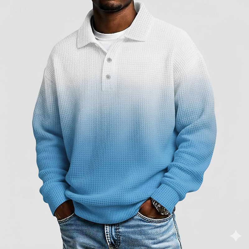 Men's Gradient Ramp Waffle Polo Shirts Long Sleeve Polo Shirts Lapel Sportswear Casual School Athleisure Daily Wear 3D Print Spring Fall Winter Blue Navy Blue Purple