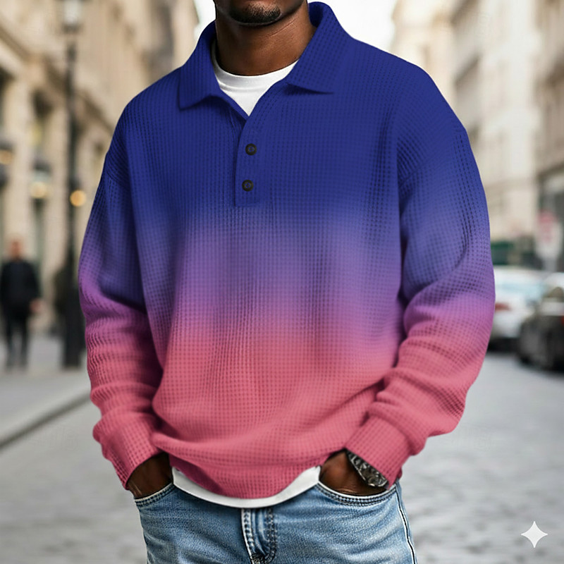 Men's Gradient Ramp Waffle Polo Shirts Long Sleeve Polo Shirts Lapel Sportswear Casual School Athleisure Daily Wear 3D Print Spring Fall Winter Blue Yellow Red