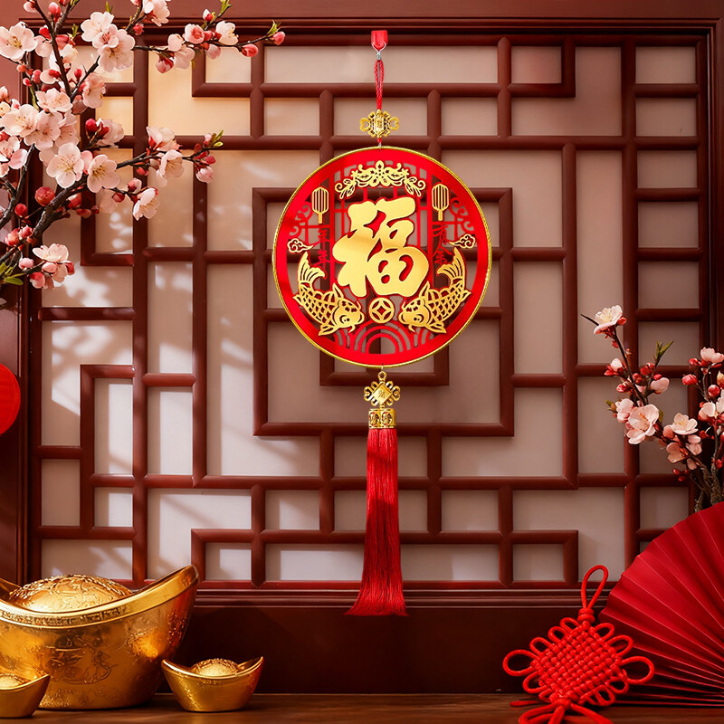 1pc 31.4in Chinese New Year Hanging Ornament, 2026 Spring Festival Fu Character 3D Lucky Pendant with Tassel, Year of The Horse Lunar New Year Hanging Decorations for Home Office Wall Door Window Nian Nian You Yu