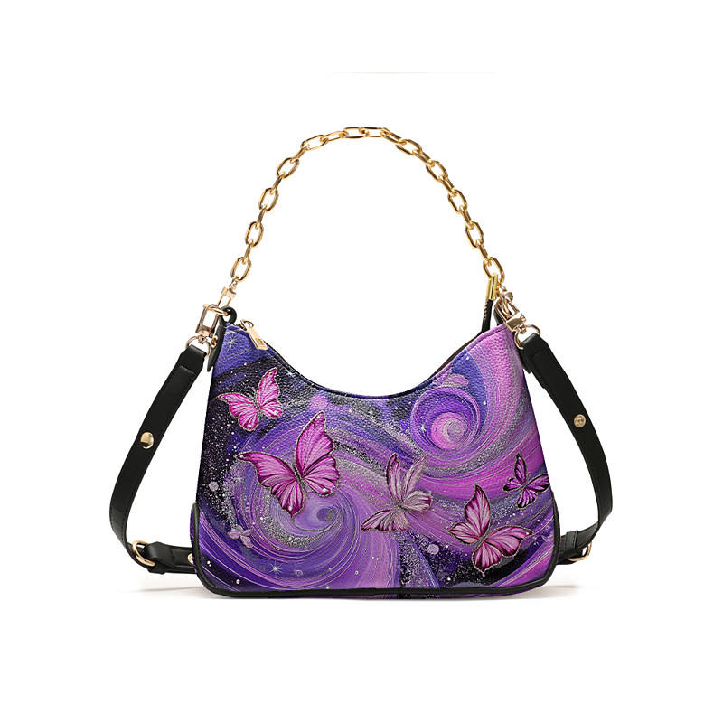Women's Faux Leather Shoulder Bag with Adjustable Strap, Butterfly Pattern, Multi-Color Options, Versatile Carrying Styles for Casual and Formal Occasions