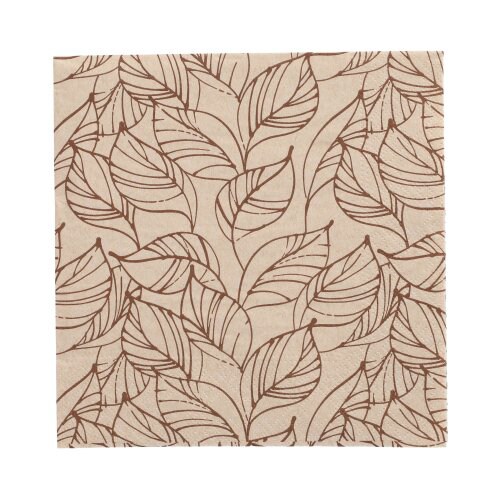 Papstar 200 Servietten, 3-lagig 1/4-Falz 33 cm x 33 cm natur `Shapes of Leaves` aus recyceltem Papier