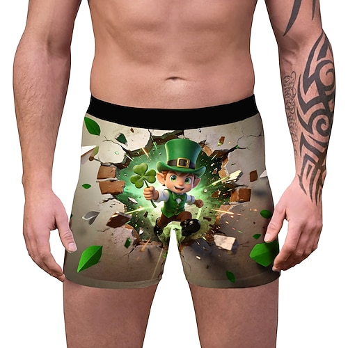 San Patrizio 2026 Leprechaun Trifoglio Irlandese fortunato Carnevale Boxer aderenti Biancheria intima Cosplay Adulti Per uomo Giorno di San Patrizio Casuale Feste Costume di Carnevale facile Vestirsi