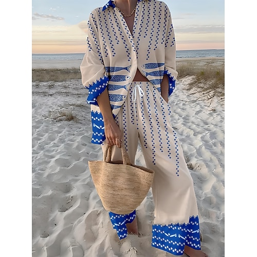 Per donna Moda Streetwear Camicia Set di biancheria in cotone Set da due pezzi Pantaloni di Lino Pantaloni Manica Lunga Colletto a Camicia Blocco di colori Patchwork Abbigliamento quotidiano Data