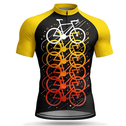 Da uomo Maglia da Ciclismo Geometrico Manica Corta Bicicletta Maglia Top con 3 tasche posteriori Resistente ai Raggi UV Asciugatura Rapida Con tasche Cerniera Frontale Gli sport Giallo Arancione