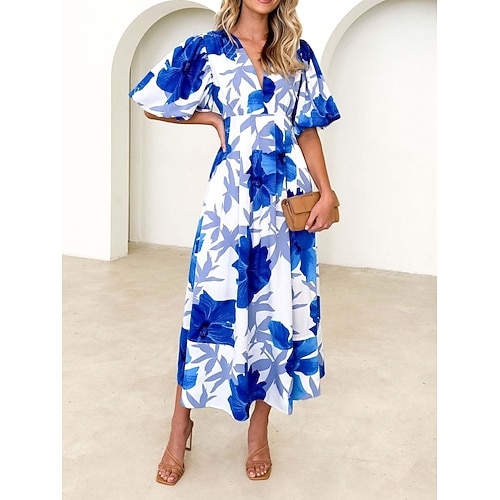 Per donna Abito maxi Abito a trapezio Casual All'aperto Uscire Vestibilità comoda Floreale Grafico Mezza Manica Scollo a V Blu Rosa Arcobaleno Estate Primavera
