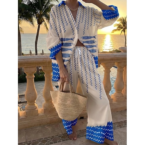 Per donna Set di Pantaloni Bolero Top Manica Lunga Colletto a Camicia Geometrico Moda Streetwear Quotidiano All'aperto Spiaggia Blu Rosa Rosa scuro Estate Vestibilità comoda