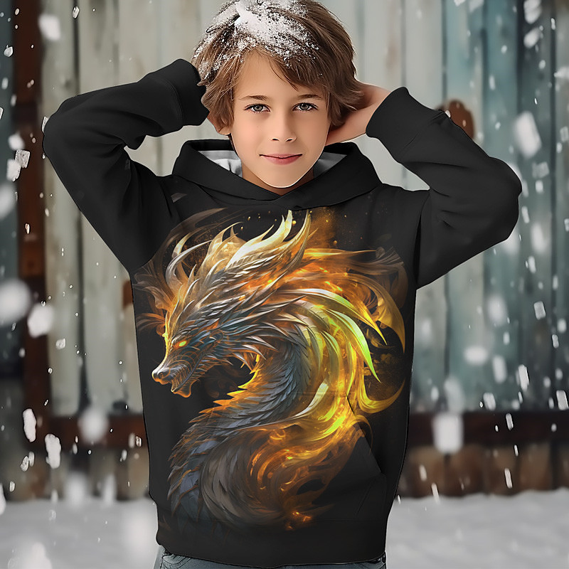 Boys' 3D Dragon Hoodie Long Sleeve Spring Fall Fashion Streetwear Kids 4-12 Years Hooded Outdoor Casual Daily Regular Fit