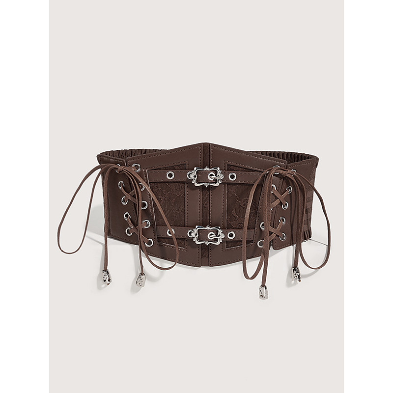 Brown Faux Leather Corset Belt for Women – Adjustable Lace-Up Waist Cincher with Vintage Buckle Design, Perfect for Dresses and Casual Outfits