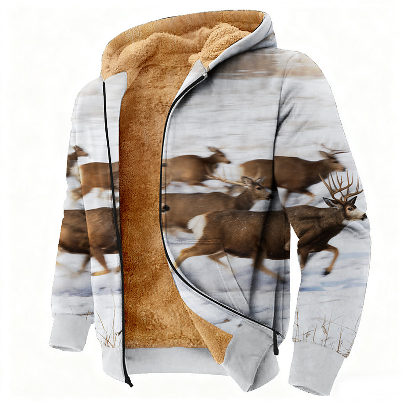 Men's Animal Deer Fleece Hoodie Jacket Sweatshirt Classic Military Hunting Long Sleeve Crew Neck Outdoor Camping Light Blue White 1 White Zip Up Fall Winter Designer S M L XL 2XL 3XL