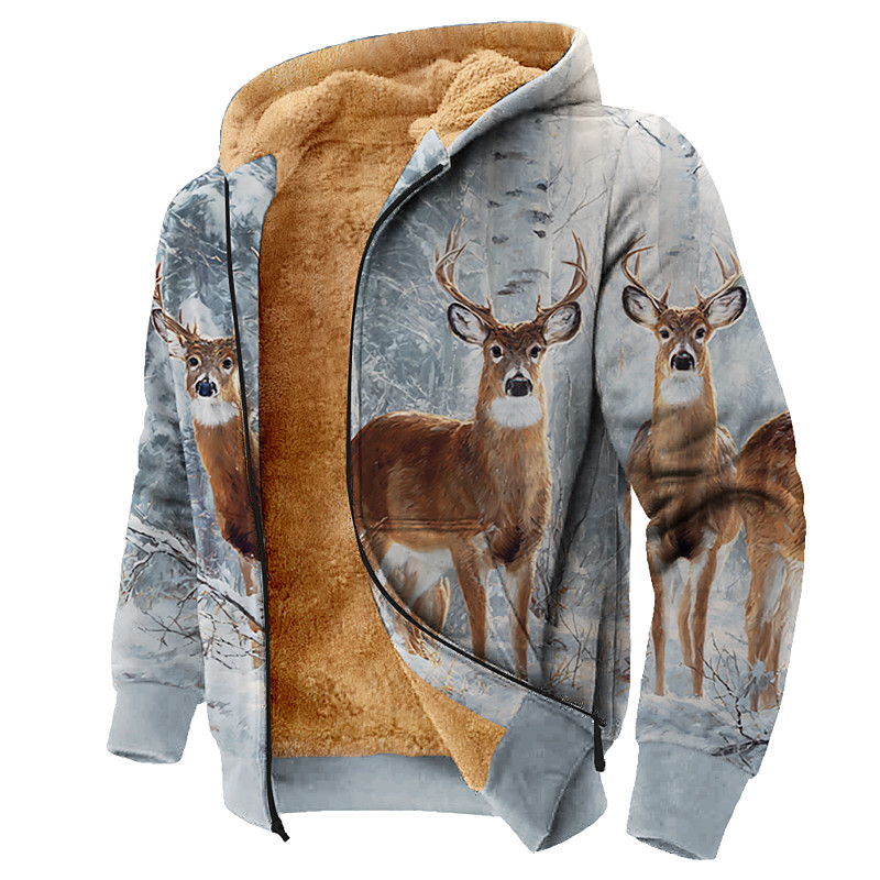 Men's Deer Fleece Hoodie Jacket Sweatshirt Classic Military Hunting Long Sleeve Crew Neck Outdoor Camping Light Brown Brown Gray Zip Up Fall Winter Designer S M L XL 2XL 3XL
