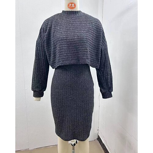 Per donna Insieme del vestito Abito Sottoveste Abito Midi Elegante Casual Semplice Design Abito Midi Manica Lunga Collo Alto Formale All'aperto Nero Azzurro cielo Albicocca Primavera Autunno
