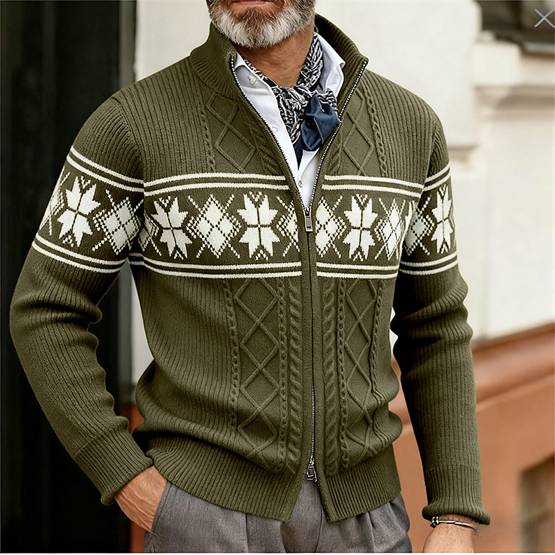Men's Christmas Sweaters Cardigan Sweater Fair Isle Sweater Zip Sweater Knit Sweater Ribbed Knit Regular Tops Jacquard Zip Up Geometric Stand Collar Vintage Fashion Christmas Vacation Clothing Apparel