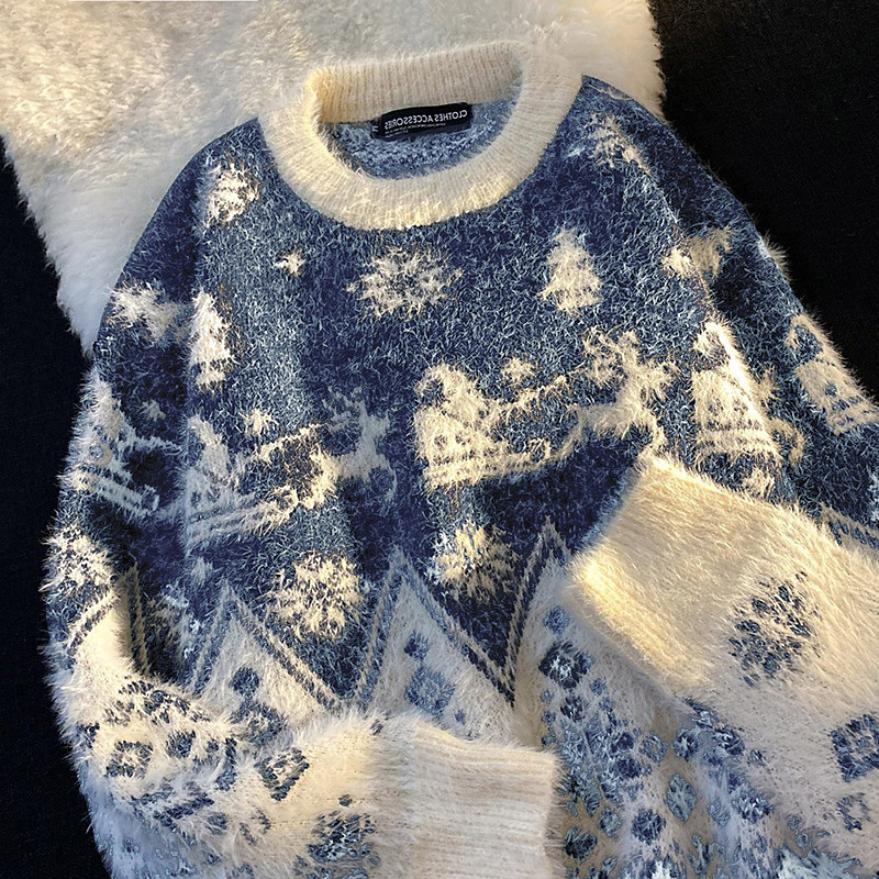 Women's Christmas Sweater Fair Isle Sweater Sweater Pullover Vintage Fashion Streetwear Graphic Crew Neck Knitted Print Long Sleeve Regular Tops Knit Daily Holiday Going out Blue Black Fall Winter