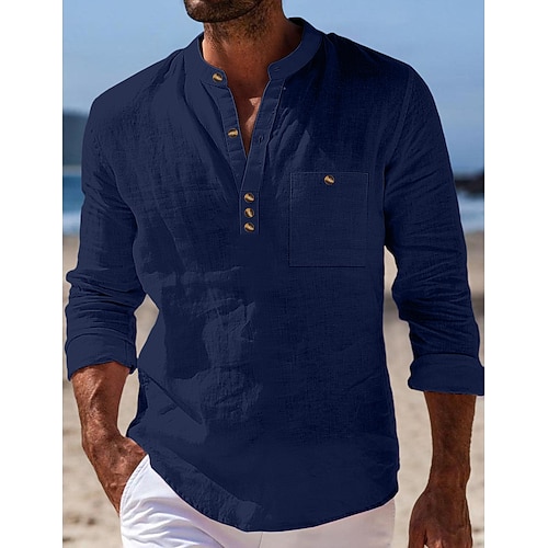 Per uomo Camicia Camicia di lino Camicia popover Camicia Estiva Abbigliamento da spiaggia Semplice Vacanza Casual Giallo Chiaro Nero Bianco Blu marino Manica Lunga Henley Estate Primavera