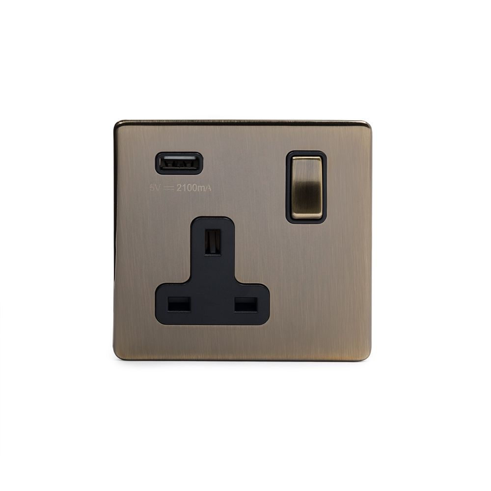 Soho Lighting Antique Brass 1 Gang 13A DP Socket with USB-A 2.1A - Size: 86mm x 86mm x 4.5mm